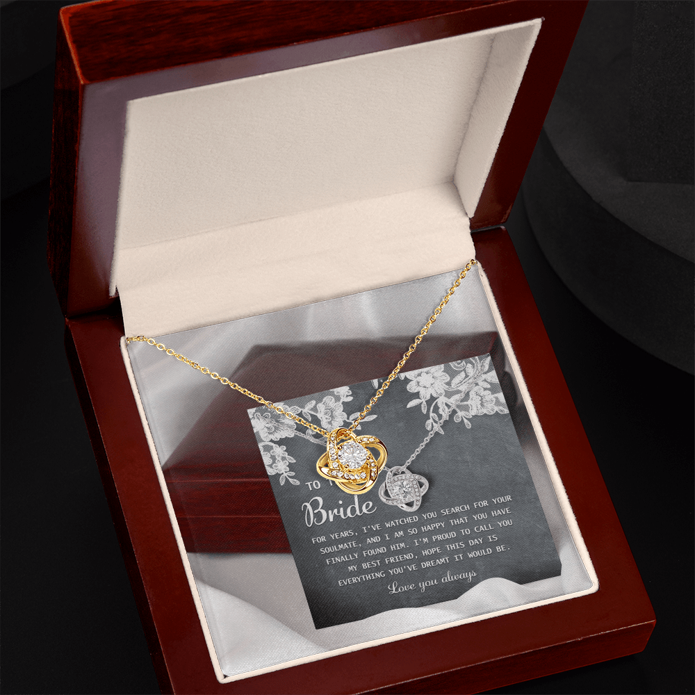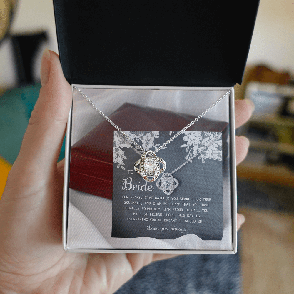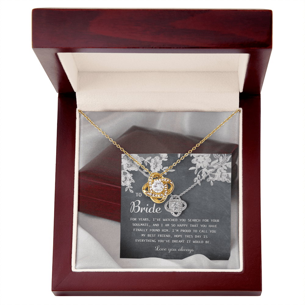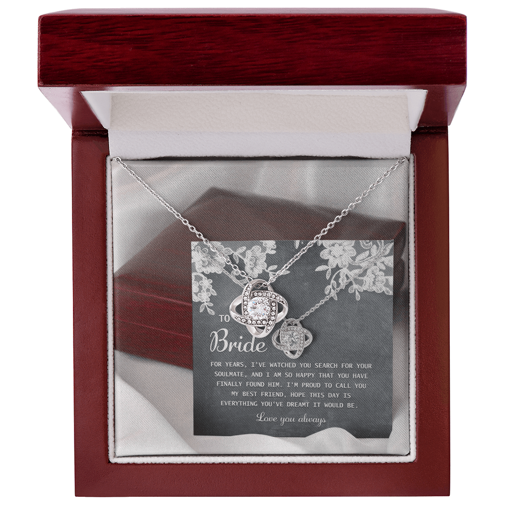 TO THE BRIDE, FOR YEARS, I'VE WATCHED YOU SEARCH FOR YOUR SOULMATE, AND I AM SO HAPPY THAT YOU HAVE FINALLY FOUND HIM. I'M PROUD TO CALL YOU MY BEST FRIEND, HOPE THIS DAY IS EVERYTHING YOU'VE DREAMT IT WOULD BE.LOVE YOU ALWAYS