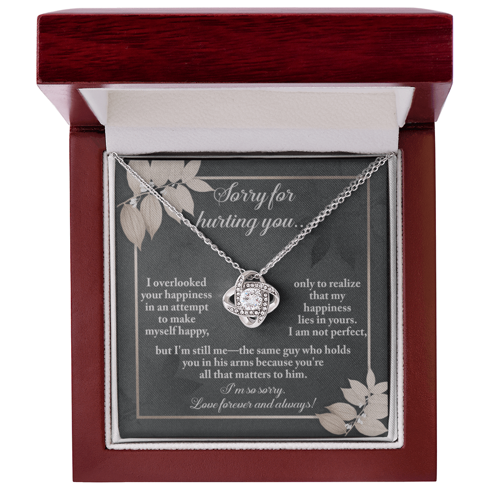 I overlooked your happiness in an attempt to make myself happy, only to realize that my happiness lies in yours. I am not perfect, but I'm still me, me-the same guy who holds you in his arms because you're all that matters to him. I'm so sorry. Love forever and always.