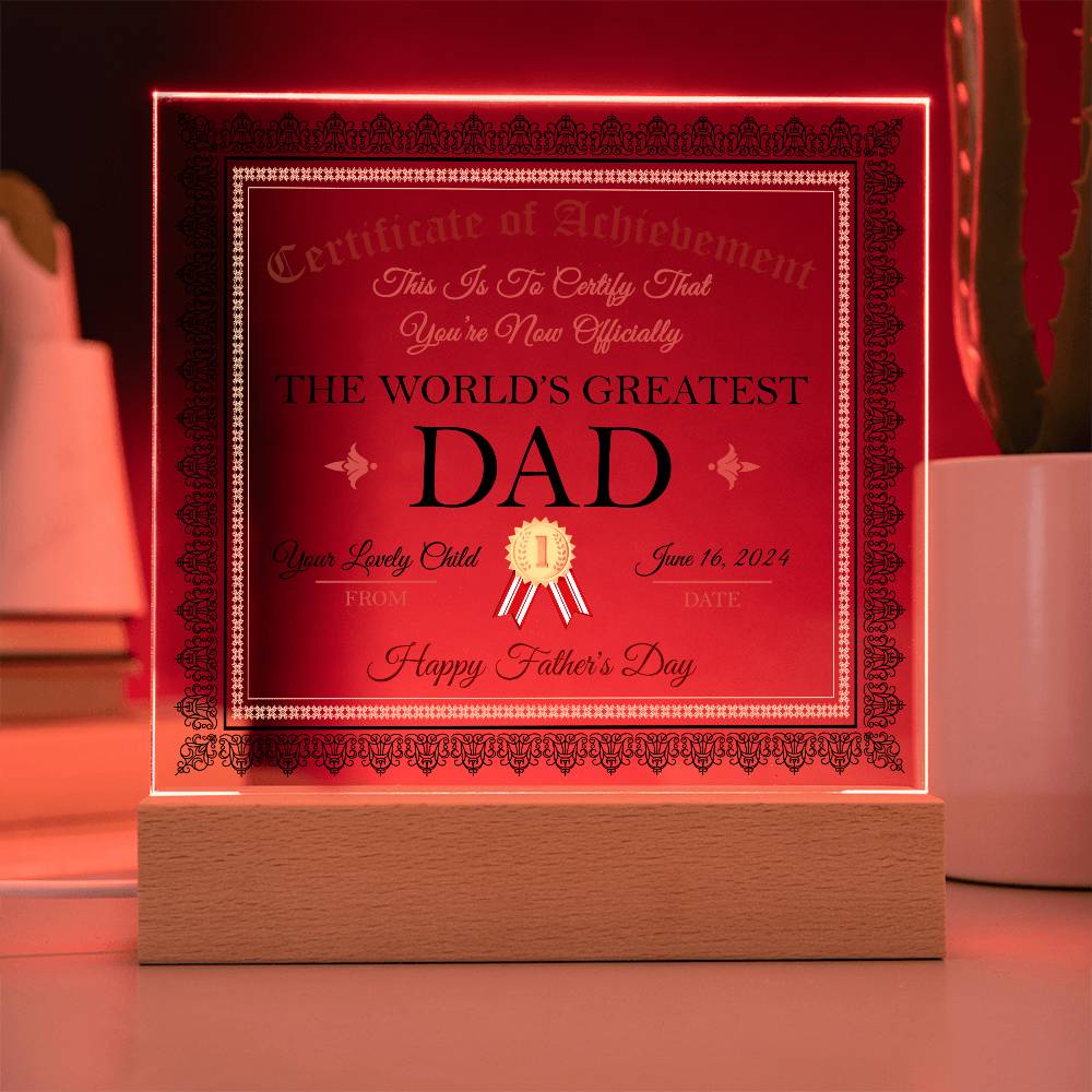 Certificate of achievement ! This is to certify that you're now officially the world's greatest Dad. Your lovely child ! happy Father day!